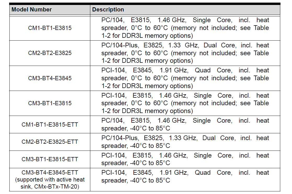 可选规格(CM1-BT1-E3815,CM2-BT2-E3825,CM3-BT4-E3845,CM3-BT1-E3815,CM1-BT1-E3815-ETT,CM2-BT2-E3825-ETT,CM3-BT4-E3845-ETT,CM3-BT1-E3815-ETT)