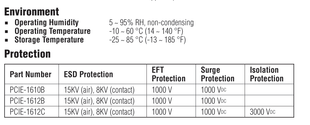 PCIE-1610B/PCIE-1612B/PCIE-1612C