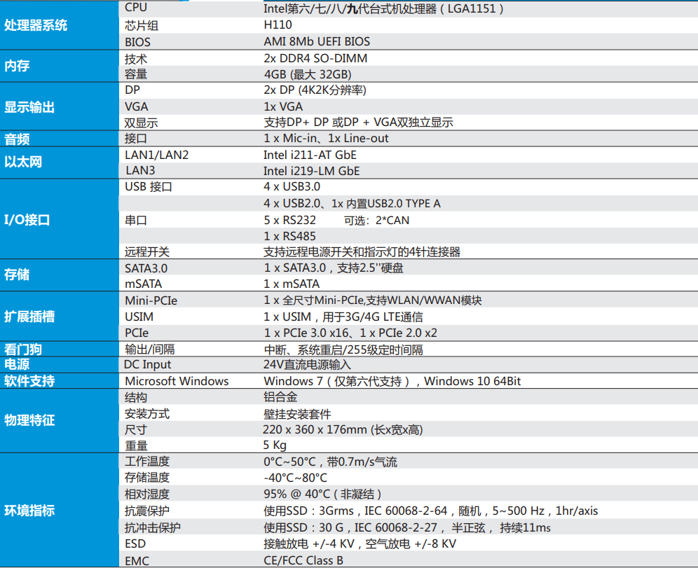 ● 1x PCIe Gen3 x16 、1x PCIe Gen2 x2插槽