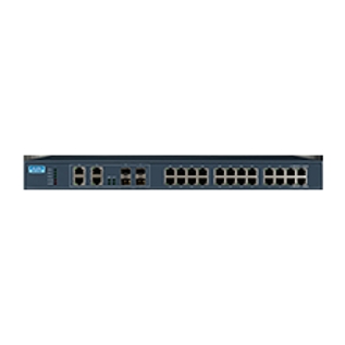 The EKI-2428G is an unmanaged switch with 24 Gigabit ports and 4 Gigabit SFP ports. It is designed for rack-mount installation, and suitable for edge to core industrial networks. The wire speed across all ports up to 56 Gbps for layer 2 traffic forwarding.