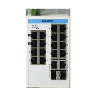 16 Fast Ethernet ports + 2 Gigabit Copper/SFP combo ports (EKI-5626C/I-EI)Entry-Level Managed Switch