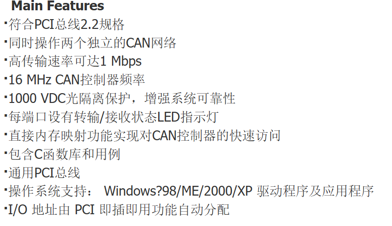 HC-PCI-1680是一款专用于CAN网络与PC之间连接的通信卡。通过内置的CAN控制器。 HC-PCI-1680通过自动重发功能实现总线仲裁和差错检测功能,降低了数据丢失几率,保证了系统可靠性。板载CAN控制器分布于内存的不同位置,您可同时独立地运行两个CAN控制器。 HC-PCI-1680除了有通用的PCI接口,还兼容了新的3.3 V和传统的5V的信号系统,这样的高兼容性使之可以在不同的系统中使用。