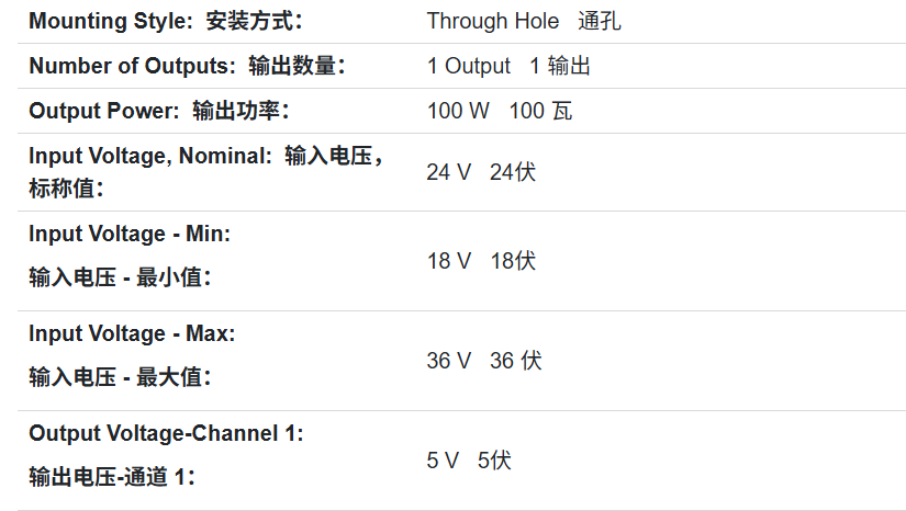 Isolated DC/DC Converters - Through Hole 5Vout 20A 100W 24Vin Pos Polarity 隔离式 DC/DC 转换器 - 通孔 5Vout 20A 100W 24Vin Pos 极性
