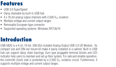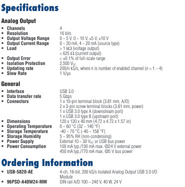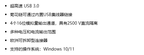 4通道,16位,200 kS / s隔离模拟输出USB 3.0 I/O模块 超高速 USB 3.0