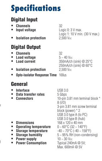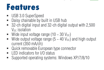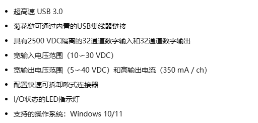32通道隔离数字输入和32通道隔离数字输出USB 3.0 I / O模块