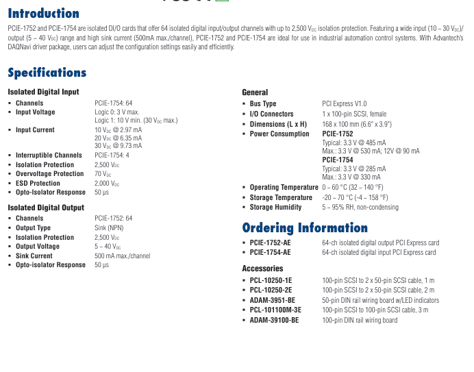 64-Ch Isolated Digital Output PCI Express Card 64-Ch Isolated Digital Input PCI Express Card