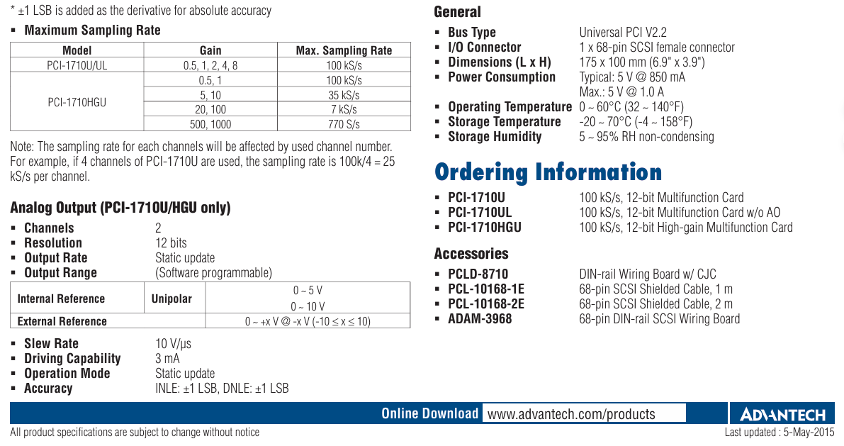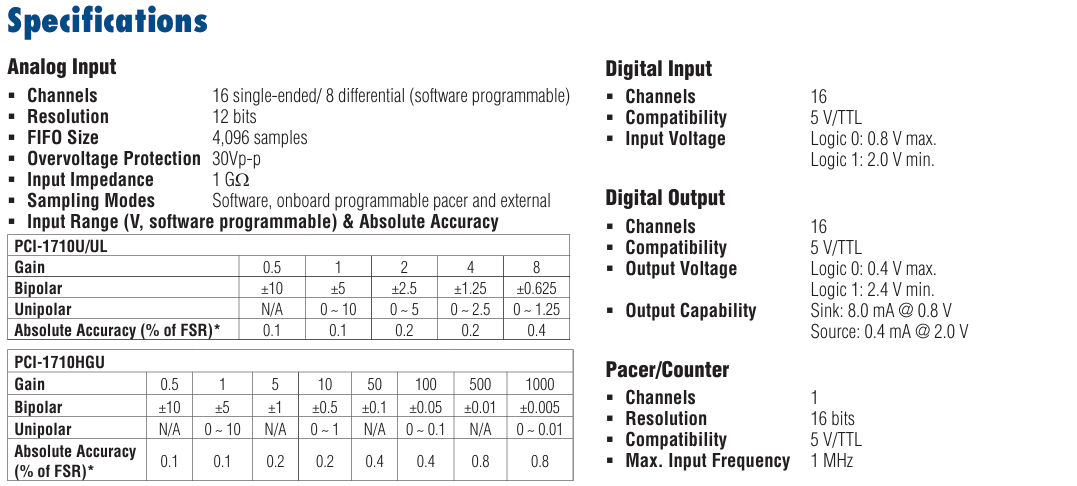 PCI-1710U-DE/PCI-1710U/PCI-1710U/UL/PCI-1710HGU