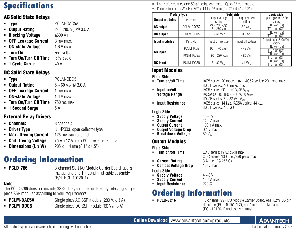PCLM-OAC5A-AE/PCLD-786/PCLD-7216